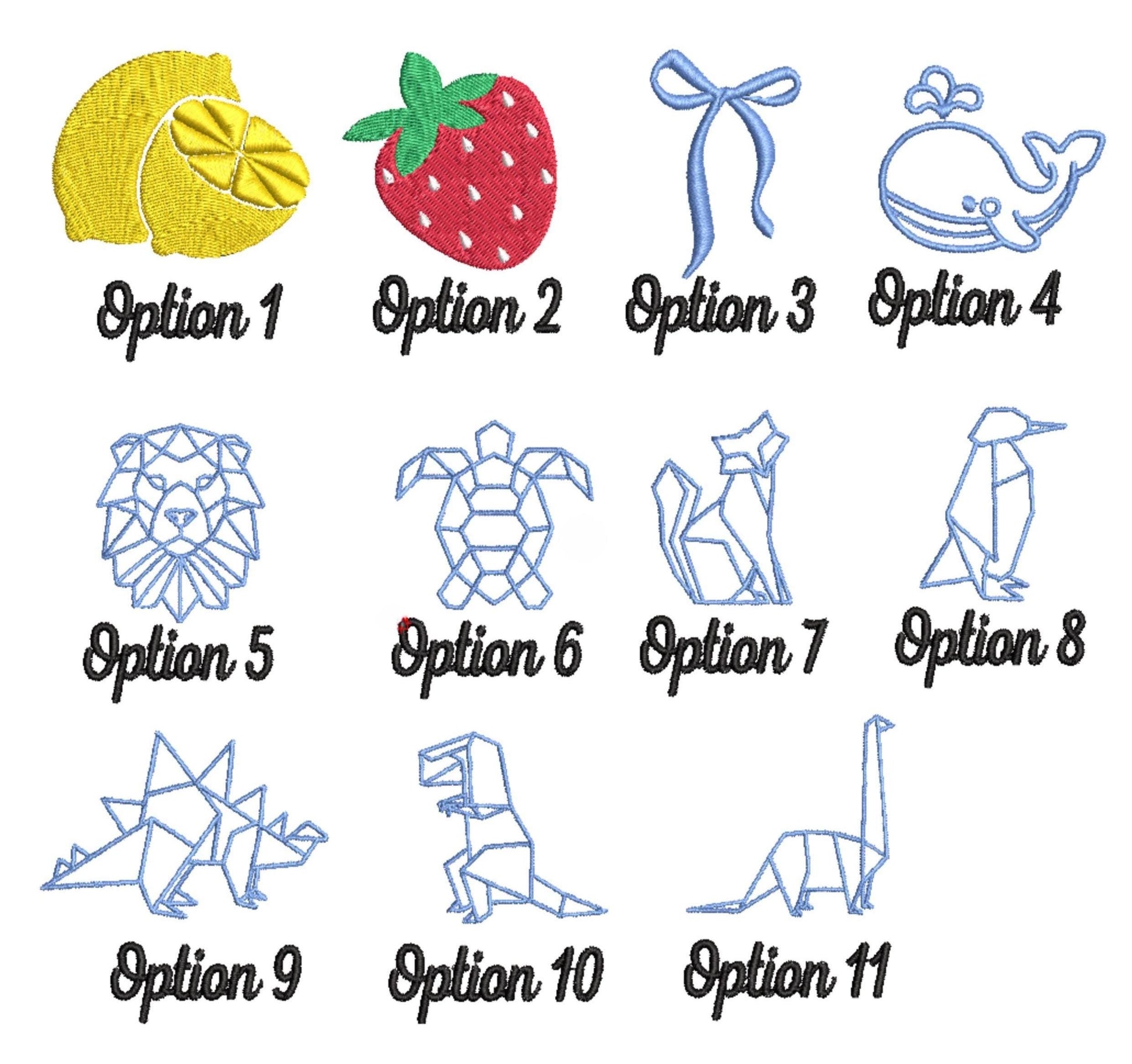 - Embroidery: Custom name + a cute icon (stars, smiley, heart, flower, lightning bolt, baseball, dinosaur, butterfly, etc.)