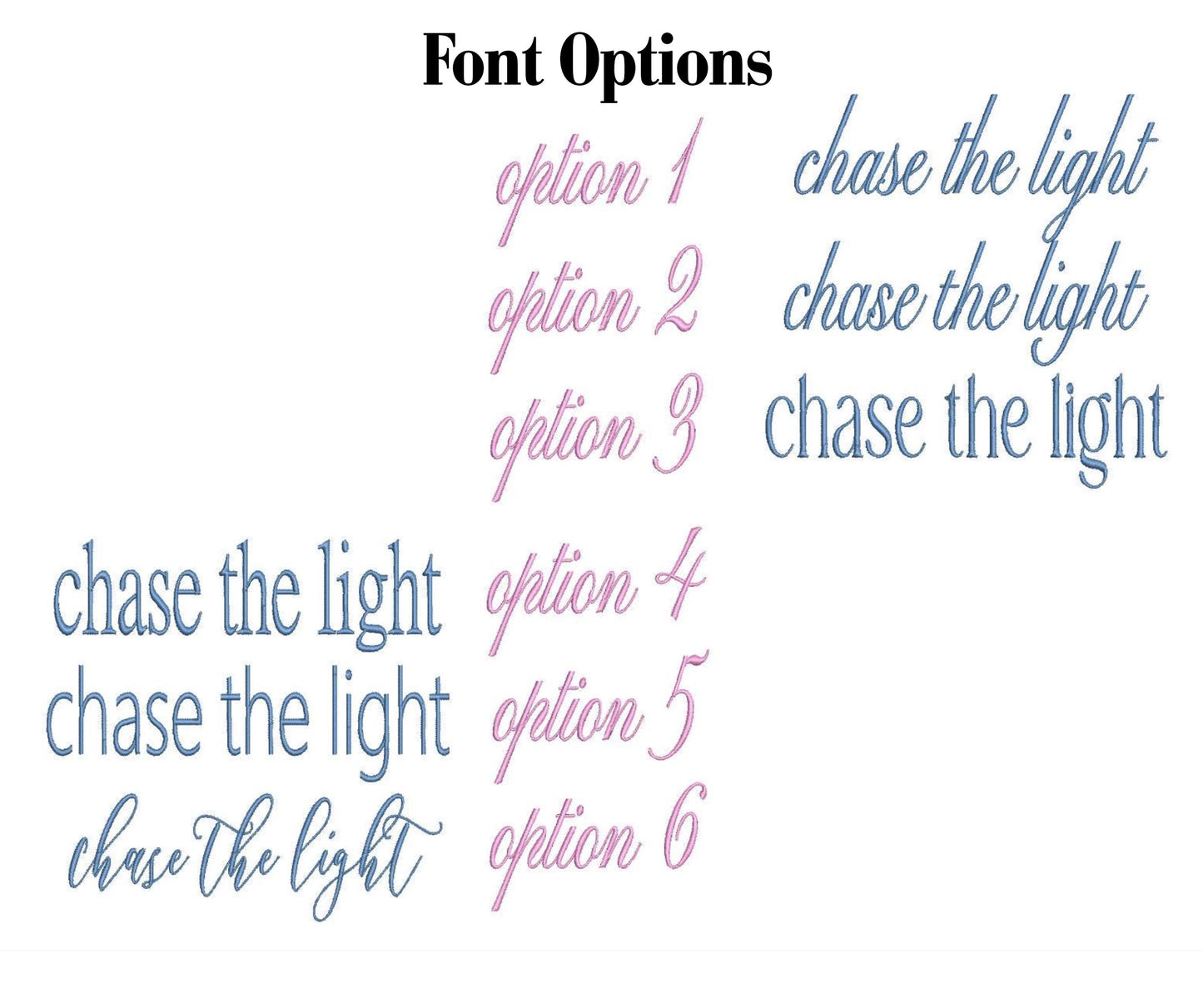 • Customizable embroidered text—choose your wording, shirt color, and thread color