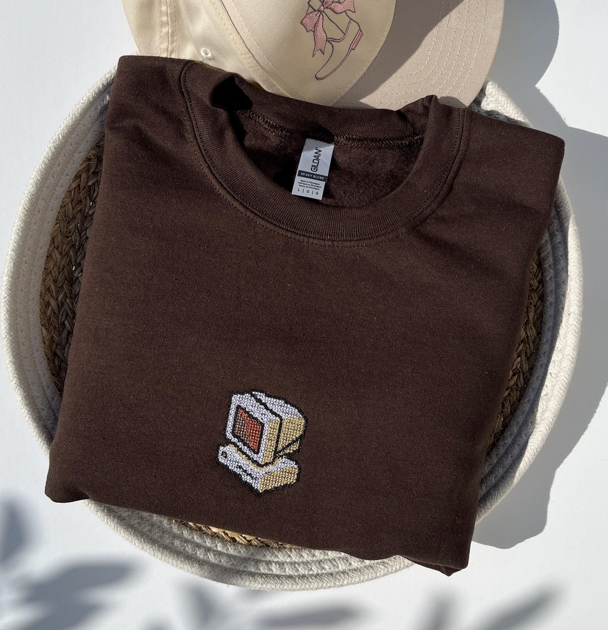 Retro Computer Embroidered Sweatshirt Pixelated Style Gamer Crewneck Vintage Tech Embroidery Geek Gift Nerd Gift Old Computer Fan Gift