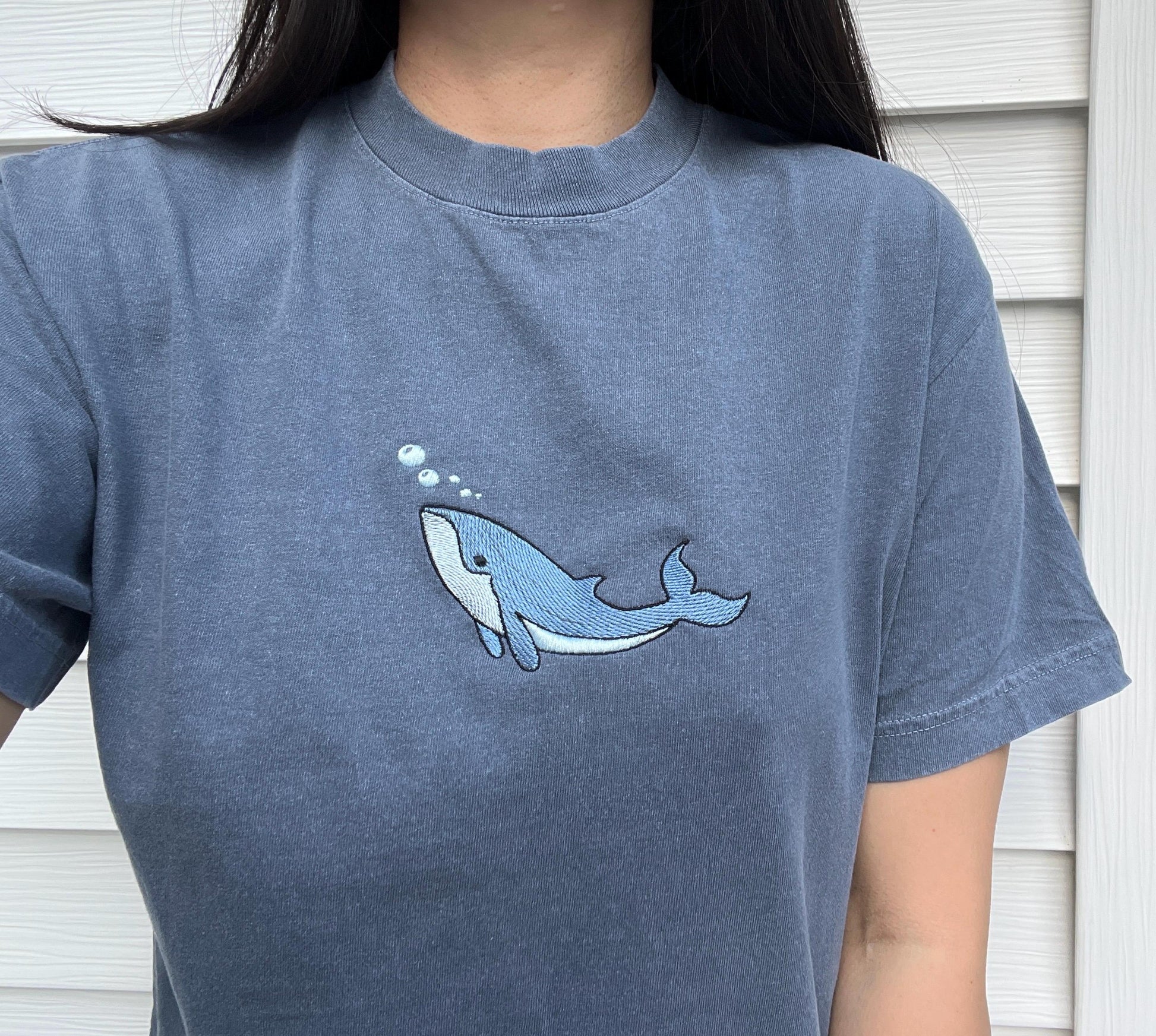 Crafted on the American Apparel heavyweight garment-dyed tee, it’s designed for lasting comfort with a soft, sturdy feel and that perfectly broken-in look. The minimalist whale embroidery adds a subtle yet charming touch, making it a versatile piece you’ll love to wear year-round.